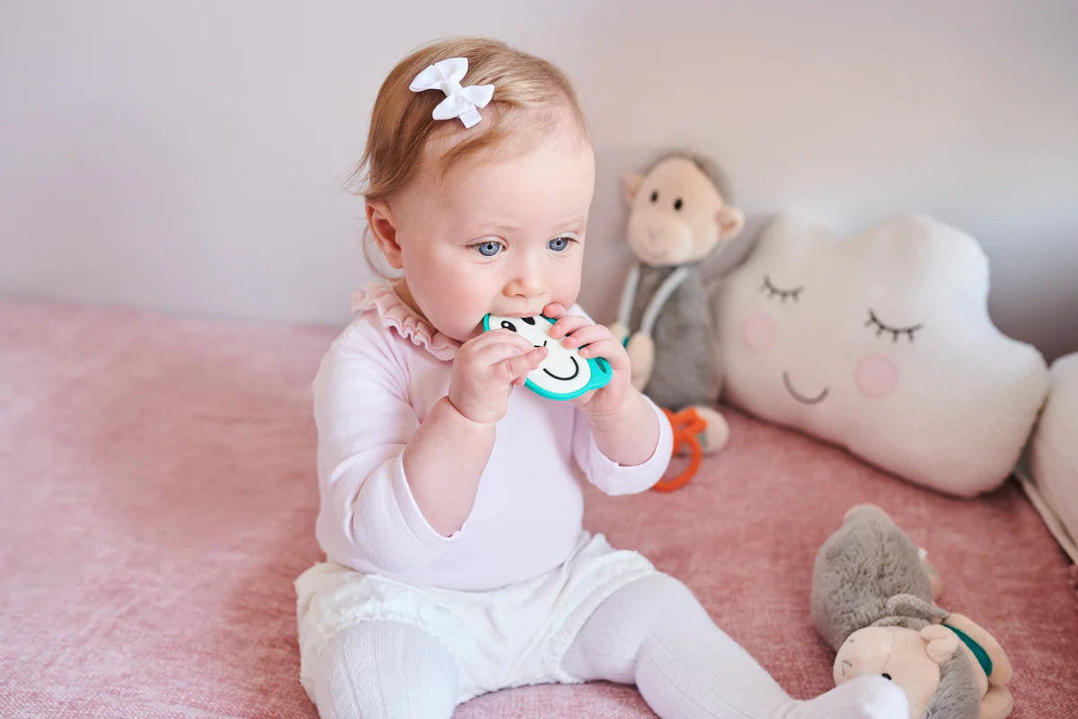 Los mordedores de cara plana masajean suavemente las encías de tu bebé donde más lo necesitan. Fácil de sostener incluso para los bebés más pequeños, a los cuales les encantará masticar este mordedor de textura flexible día y noche. La tecnología antimicrobiana BioCote® ayuda a mantener a raya a los gérmenes, mientras que las protuberancias texturizadas masajean suavemente las encías de tu bebé para aliviar el dolor. La tecnología antimicrobiana BioCote® reduce los microbios, lo que lo hace más higiénico y más limpio que cualquier otro mordedor en el mercado y más fácil de mantener fresco y limpio.